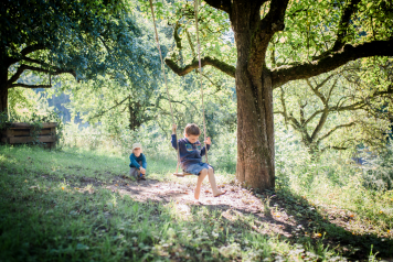 Schließlich wird das motorische Geschick der Kinder durch Bewegung auf unebenen Untergrund, sowie das Klettern in den Sträuchern und Bäumen gefördert. Auf dem Gelände stehen den Kindern vielfältige Spiel- und Bewegungsmöglichkeiten zur Verfügung: Eine Schaukel, ein Klettergerüst, ein Sandkasten, eine dreieckige Kletterleiter, eine Pferdestation, eine Slagline und noch vieles mehr.